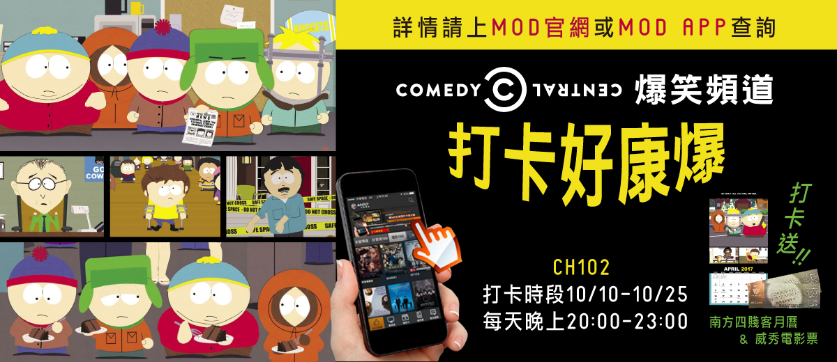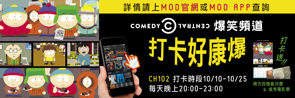 所有於MOD上訂閱COMEDY CENTRAL爆笑頻道之用戶,並須同時下載開啟MOD APP進行活動。