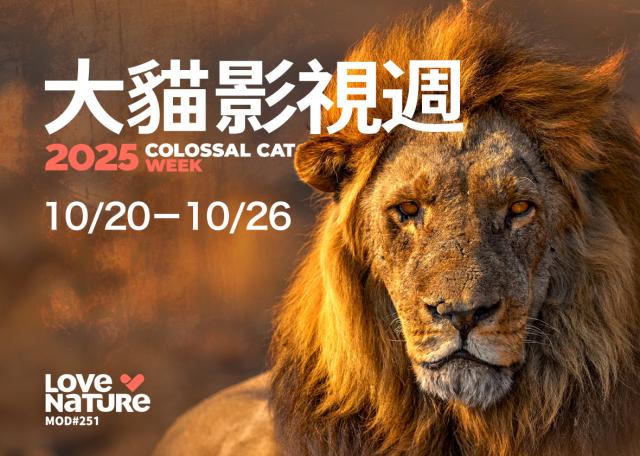有時候,真正的王者會以四隻腳行走。讓我們在「大貓影視週」期間,一同盡情讚頌並由衷欣賞這些大型貓科動物所展現出的優雅姿態,以及那份君臨天下般的威嚴氣勢。10月20日至10月26日,僅在Love Nature頻道播出。跟隨節目的鏡頭,潛行追蹤獅子、獵豹、花豹以及其他猛獸與大型貓科,穿越一片片壯麗景觀與令人驚嘆的大自然環境,在那裡競爭極為激烈、殘酷而無情,而真正能夠生存下來的,唯有動作最靈敏、最擅於潛伏的獵食高手與敏捷捕獵者。