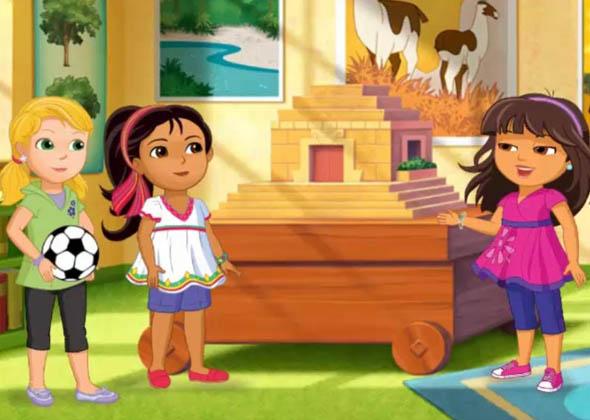 But this is no ordinary city. Down side streets, in the park, even under the school, there are portals to magical worlds filled with surprises, obstacles and villains waiting to test our friends with curricular challenges and exciting emotional stakes. Armed with an ancient magical charm bracelet, a trusted Map App, and the strength that comes from working with bright, funny, and loving friends, Dora invites preschoolers to join her in saving the day, solving problems, speaking Spanish, and giving back to the community. Together, all for one!