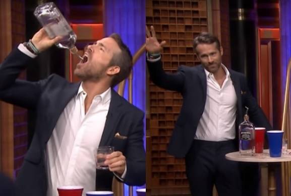 節目上萊恩雷諾斯與主持人大玩噁心雞尾酒遊戲(Drinko),必須以隨機選中的詭異成份和琴酒調成雞尾酒喝下肚。第一回合萊恩選中的是奶油蛋糕與葡萄汽水,加上琴酒後他面不改色的喝下去。