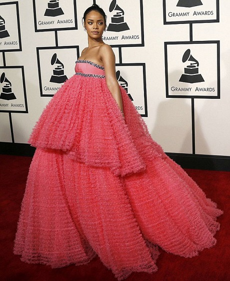 ↓2015年另一引爆話題的是蕾哈娜的粉紅蛋糕裝,成為最被網友瘋狂惡搞的對象