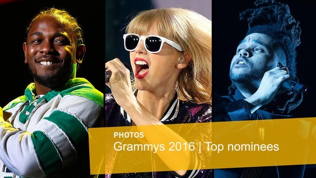 第58屆葛萊美獎將於美國時間2月15日舉行頒獎典禮,今年入圍者最受注目的莫過於美國饒舌歌手Kendrick Lamar,一舉拿下11項入圍。Kendrick向媒體表示這11個獎他一定要全包下來!頒獎當天若這11個獎項全數順利入手,將可能一舉超越搖滾天王麥可傑克遜單場拿下8座葛萊美獎的紀錄。緊接在後的是流行樂壇天后泰勒斯(Taylor Swift)和「靈魂魔人」The Weeknd,分別入圍7個獎項排名第二。