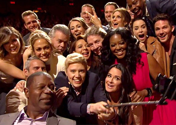 《週六夜現場》常駐喜劇演員凱特麥金儂(Kate McKinnon)日前在NBC的季前發佈(upfronts)上,再度扮起了她擅長的模仿對象艾倫狄珍妮(Ellen DeGeneres),重現她在2014年奧斯卡破推特轉發紀錄的巨星自拍合照。