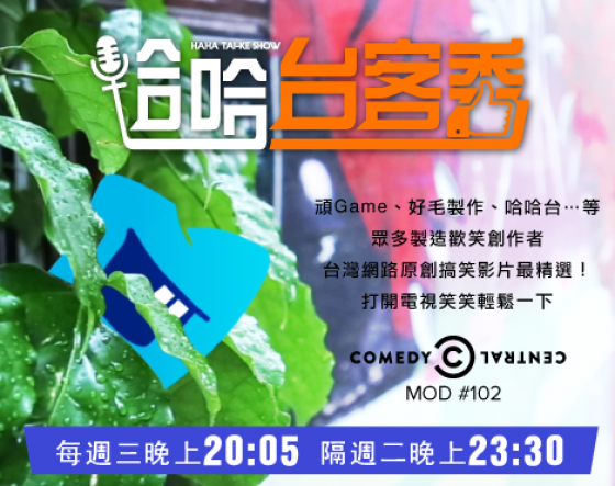 《哈哈台客秀》即將於MOD102台COMEDY CENTRAL 爆笑頻道8月3日起每週三晚上20:05全台首播,隔週二晚上23:30重播。台灣原創網路搞笑影片最精選,敬請準時鎖定。