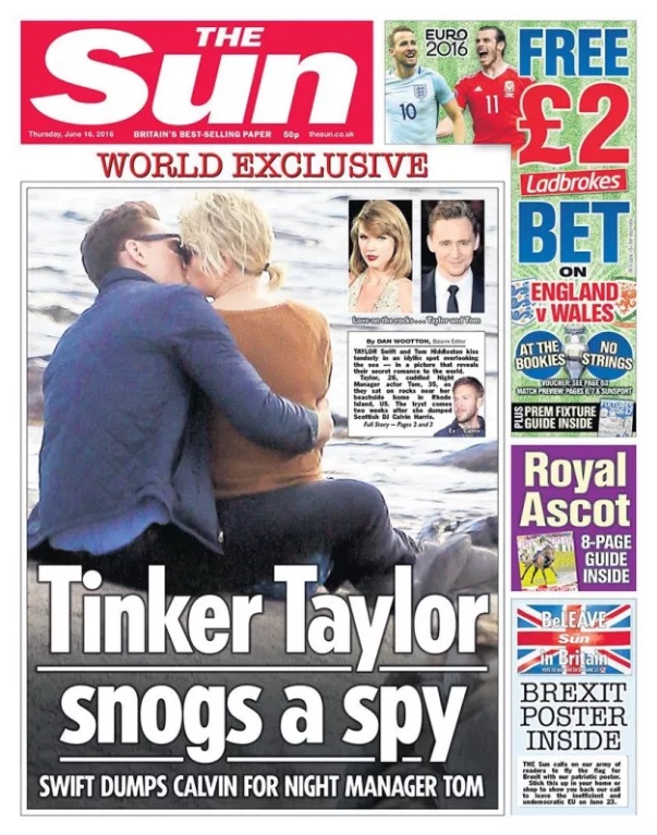 8. 湯姆希德斯頓(Tom Hiddleston)vs. 泰勒絲(Taylor Swift)