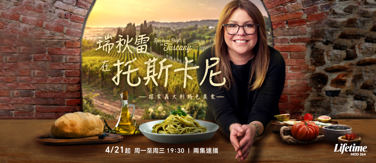 瑞秋雷將帶您品嚐她親自烹飪的義大利特色美食,這些料理來自她位於托斯卡納別墅的廚房,並使用當地最優質的食材,還加入了她個人獨特的創意。