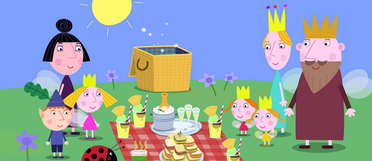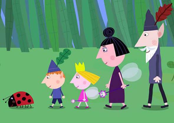 Ben and Holly’s Little Kingdom is a ten minute animation series for pre-school children set in a tiny land of elves, fairies, small animals and insects. These characters are so small that to them flowers and blades of grass seem like mighty trees. Each episode combines situations that will be familiar to small children (including playing games, snowy days, holidays, birthdays, bathtime) with the magical elements that are part of everyday life for fairies and elves. The stories revolve around the daily lives of Holly, a tiny five-year-old fairy princess and her best friend Ben, an elf of the same age. Because Holly is a young fairy she is still learning how to do magic properly and her spells often don’t work out quite as planned. She also has quite a bit to learn about flying and mostly flutters close to the ground. Ben is a young elf. Elves can’t do magic and they don’t have wings. But elves are very brave, can run fast and are very good at making things – especially toys. Ben is extremely proud of being elf.
