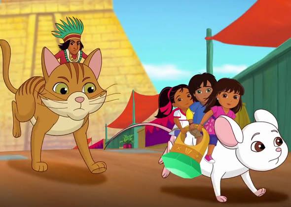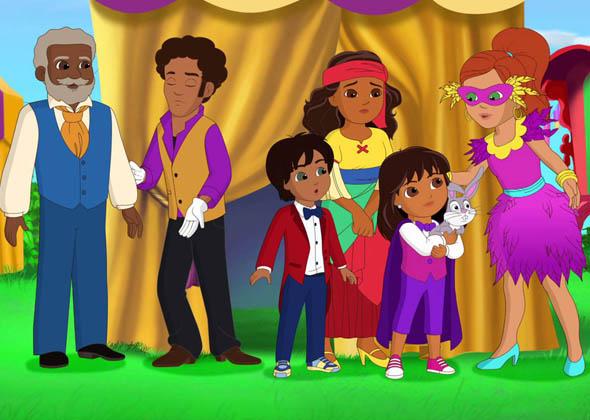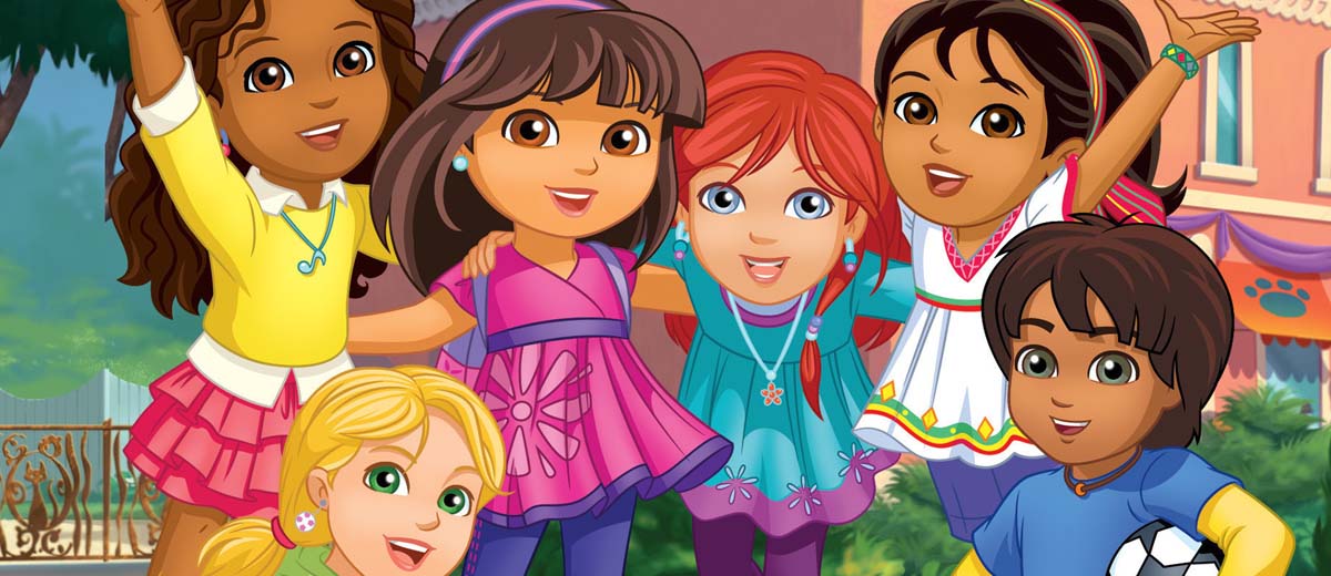 But this is no ordinary city. Down side streets, in the park, even under the school, there are portals to magical worlds filled with surprises, obstacles and villains waiting to test our friends with curricular challenges and exciting emotional stakes. Armed with an ancient magical charm bracelet, a trusted Map App, and the strength that comes from working with bright, funny, and loving friends, Dora invites preschoolers to join her in saving the day, solving problems, speaking Spanish, and giving back to the community. Together, all for one!